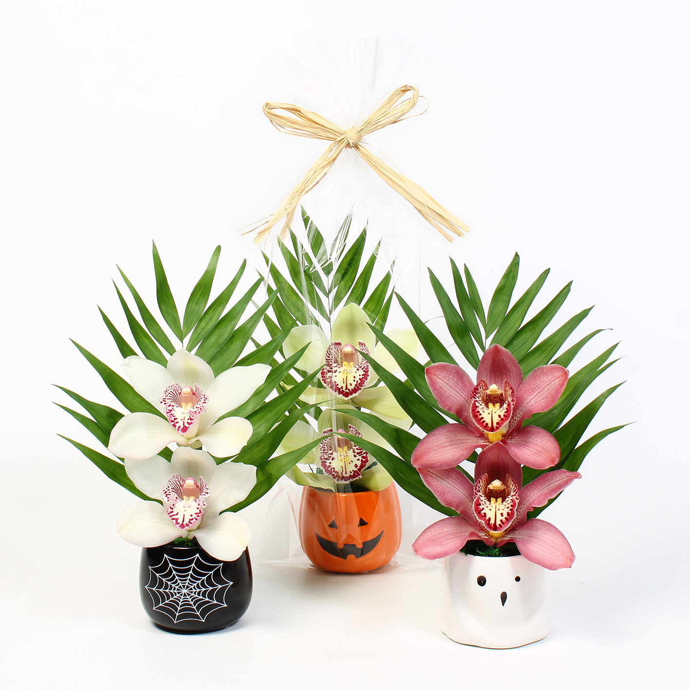 Cymbidium arr Halloween 2 bl in keramieken pot