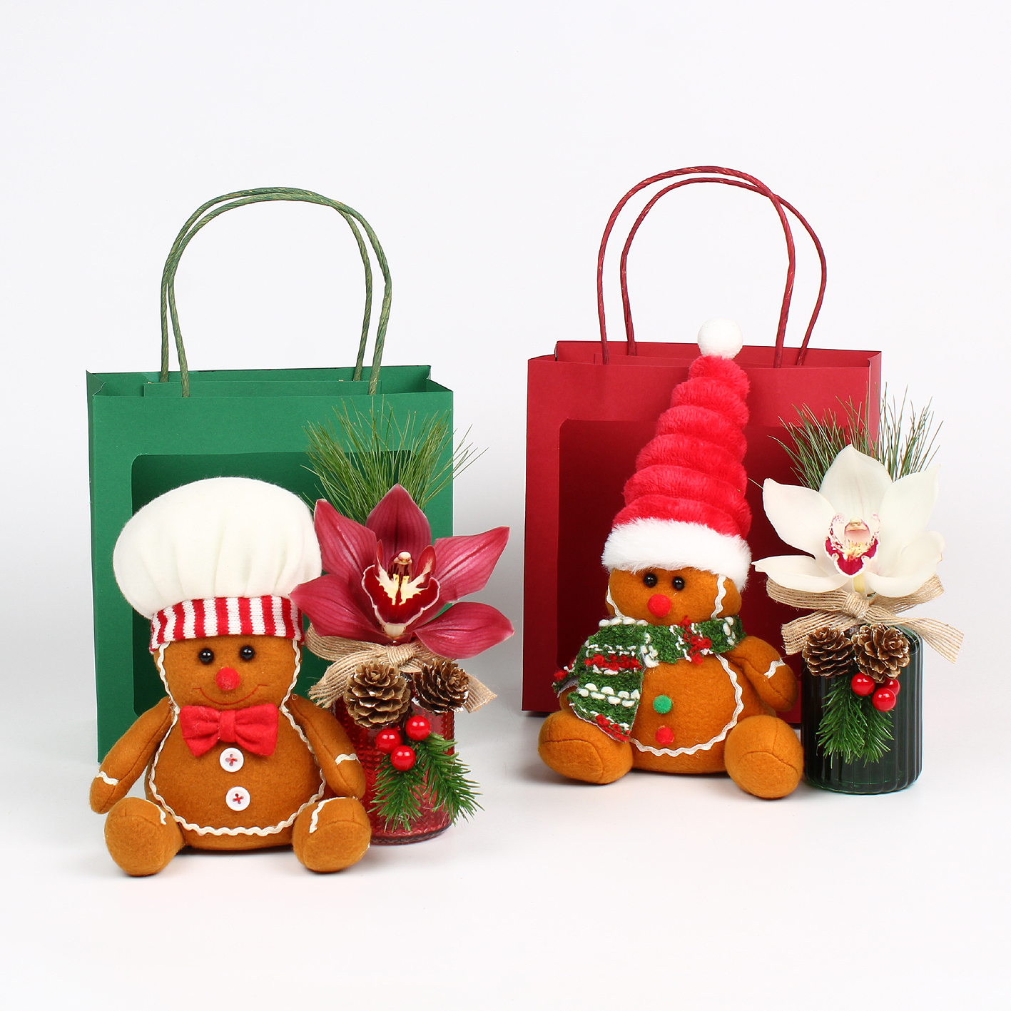 Cymbidium arr Kerst 1 bl met pluche gingerbread en decovaasje in tas