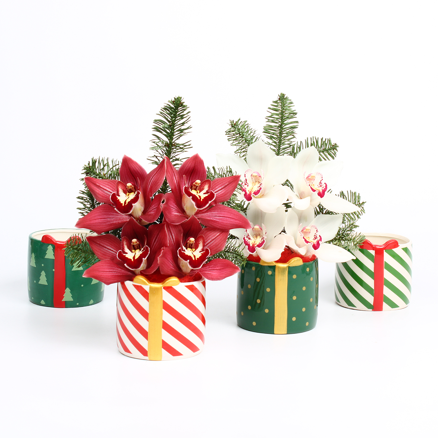 Cymbidium arr Kerst 4 bl in keramieken Christmas gifts pot