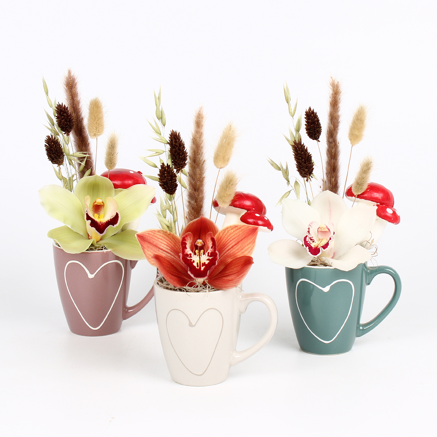 Cymbidium arr Najaar 1 bl in keramieken koffiemok