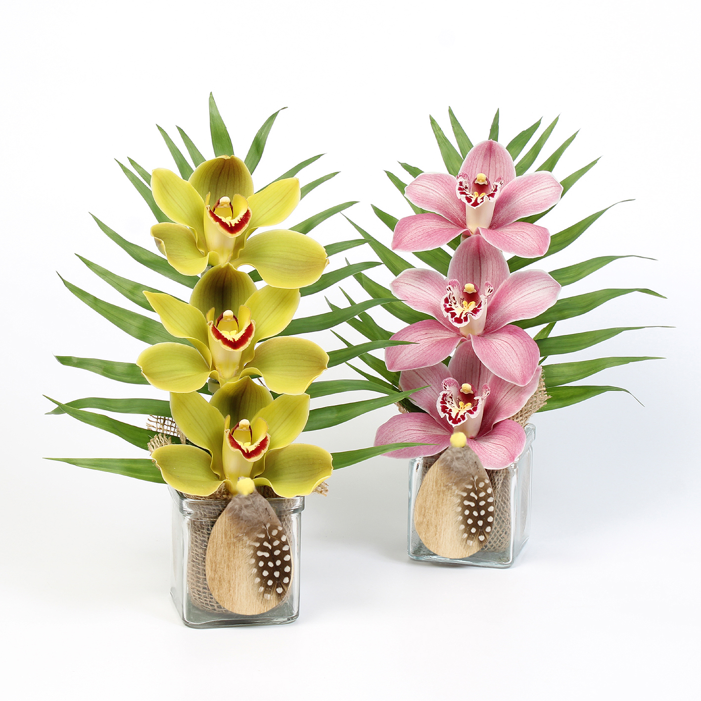 Cymbidium arr Pasen 3 bl in glazen accubakje