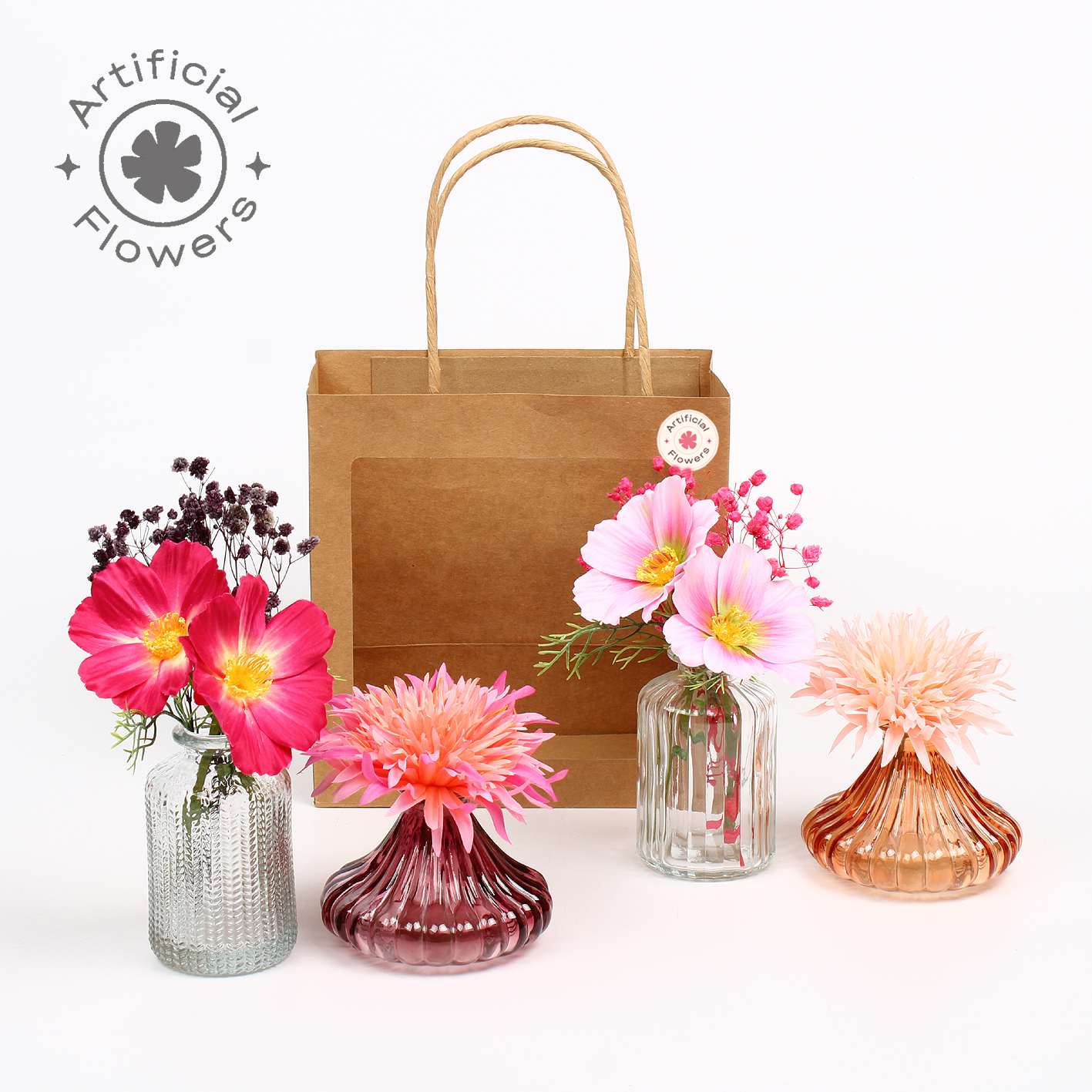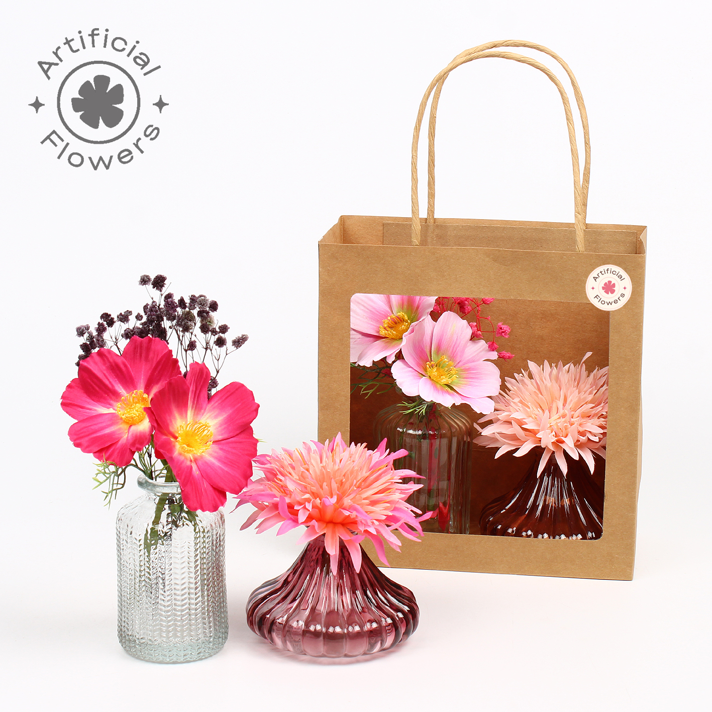 Artificial arr Mix in glasvaasjes set in kraft tas