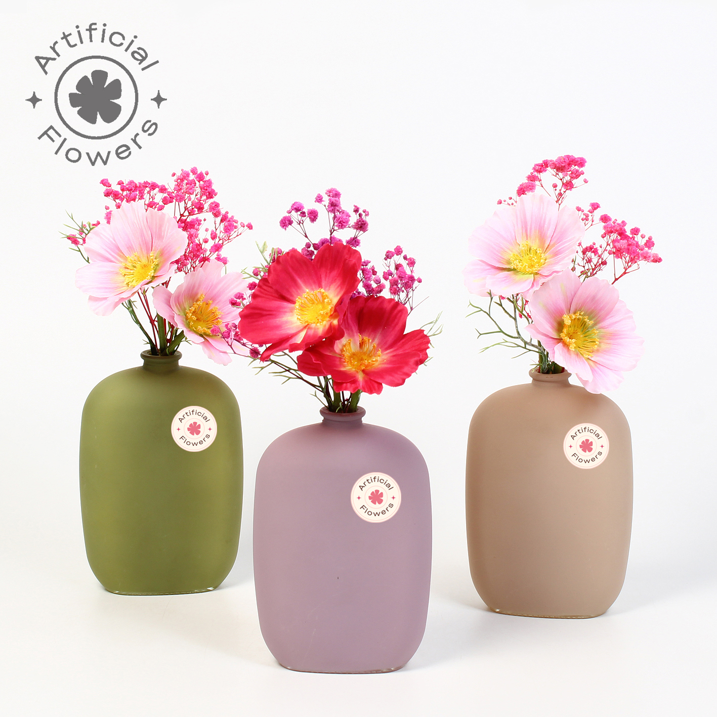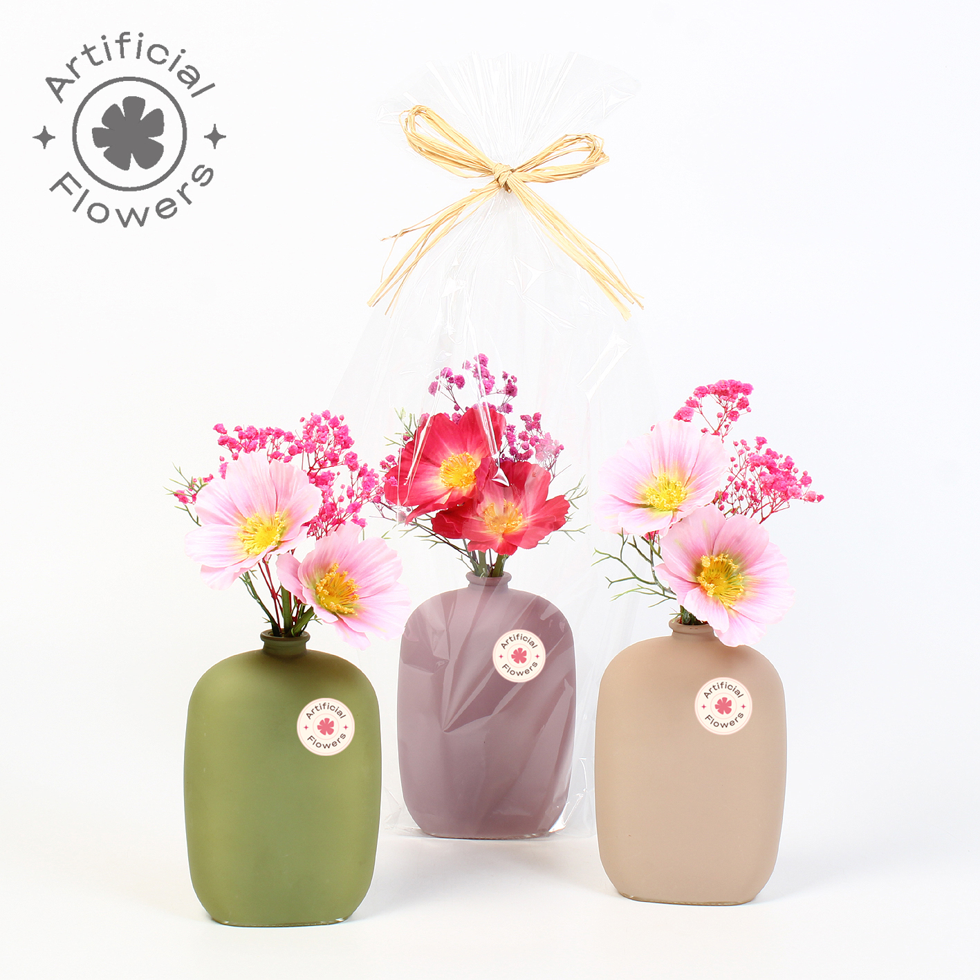 Artificial arr Cosmos in glazen muurvaasje 'Wallflower'