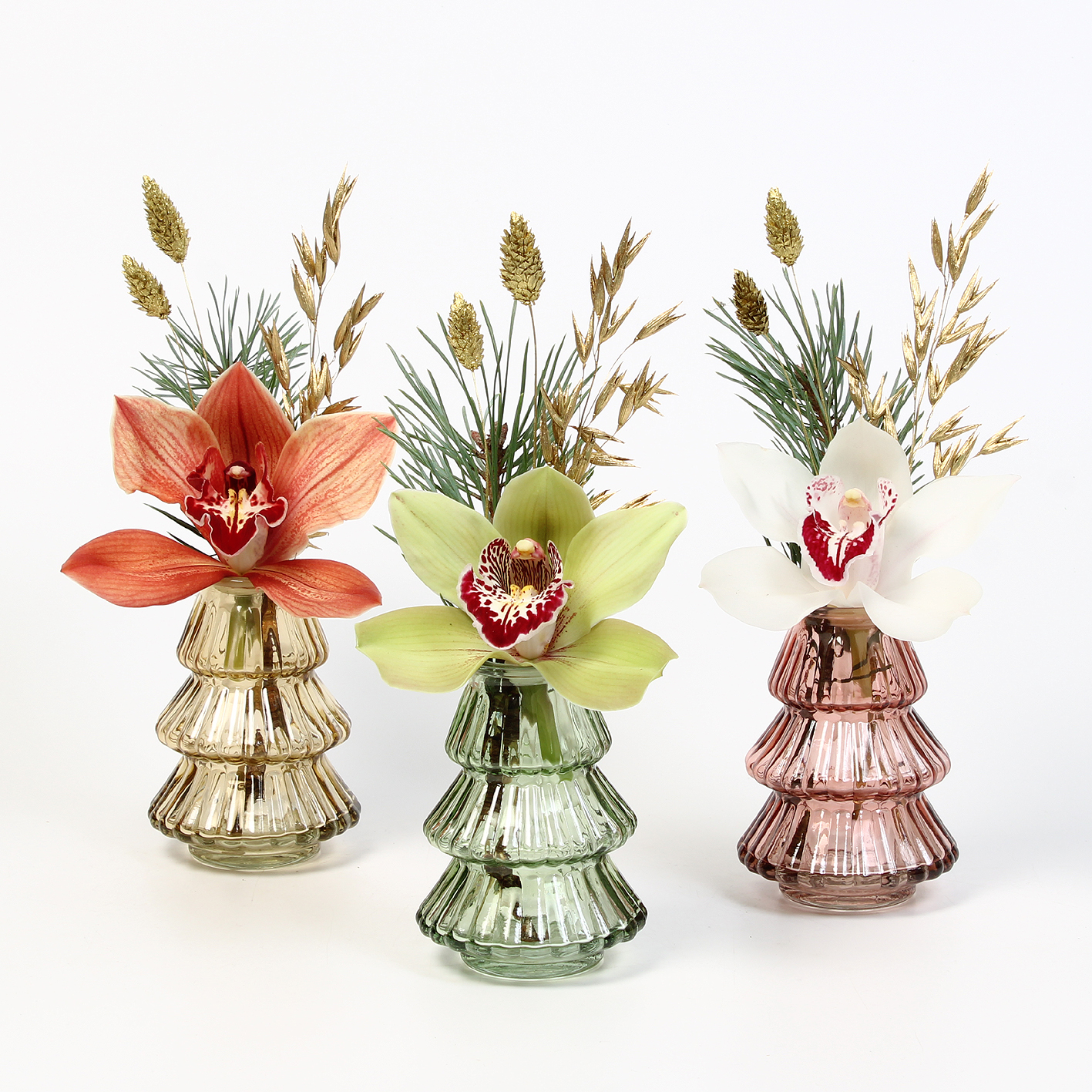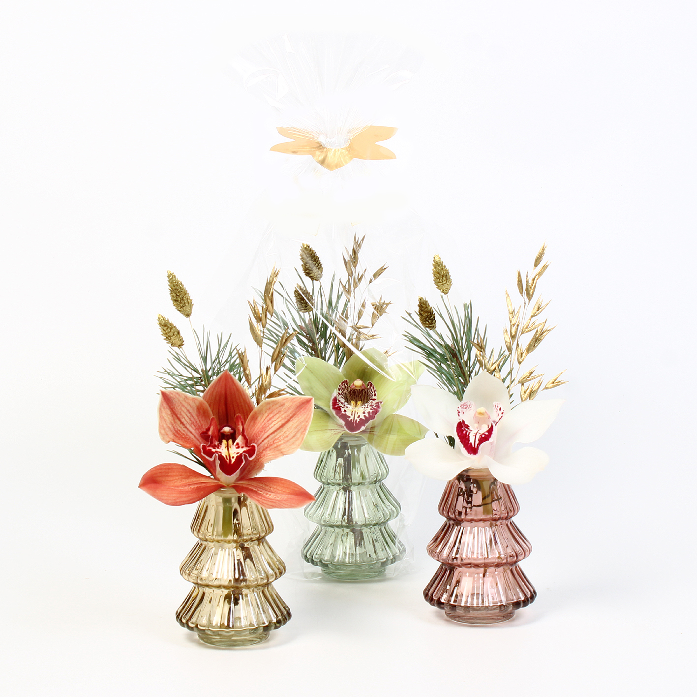 Cymbidium arr Kerst 1 bl in glazen deco kerstboomvaas
