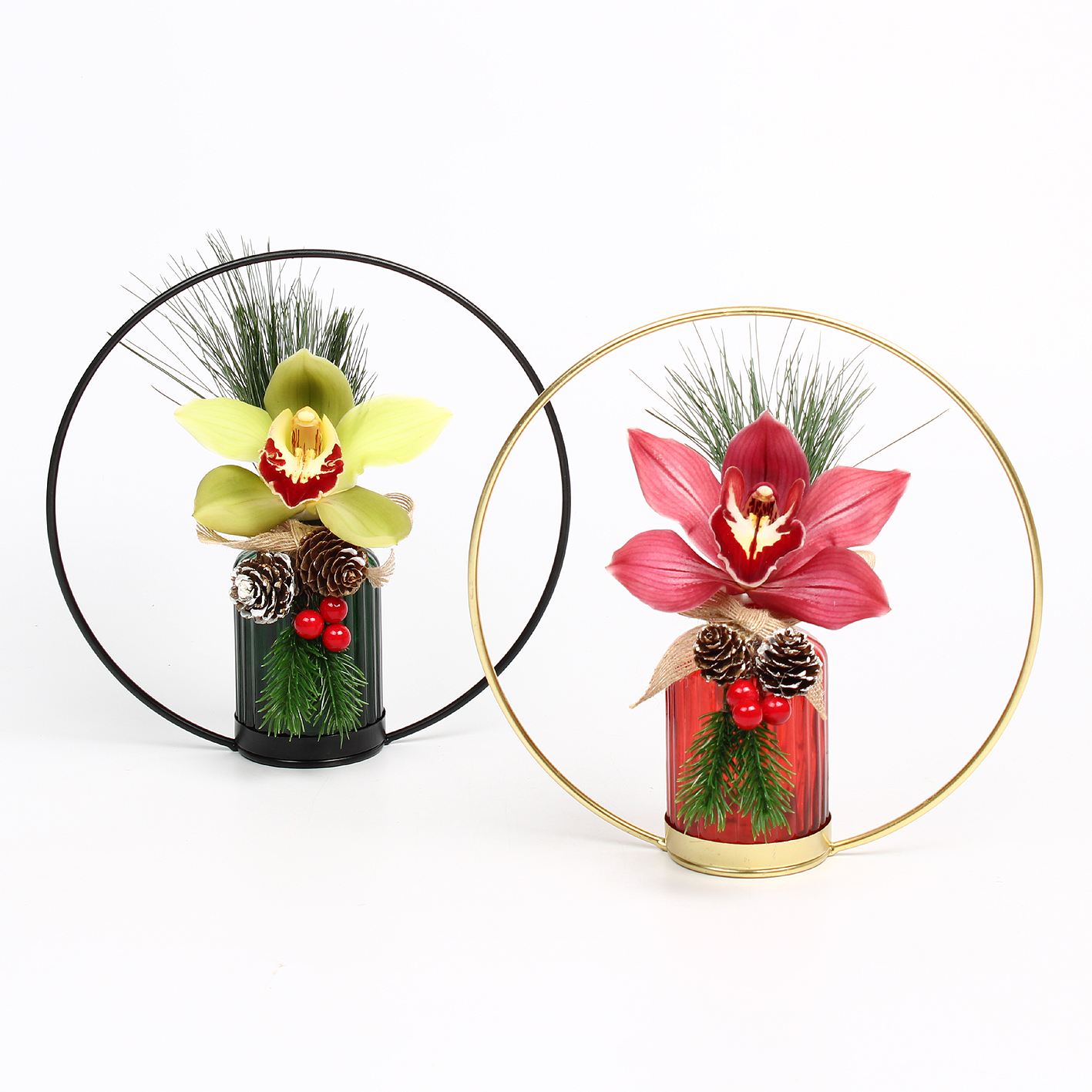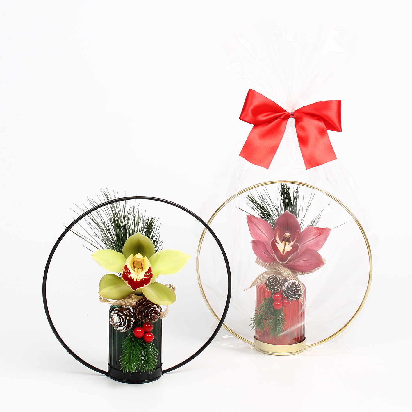 Cymbidium arr Kerst 1 bl in metalen cirkelframe met decovaasje