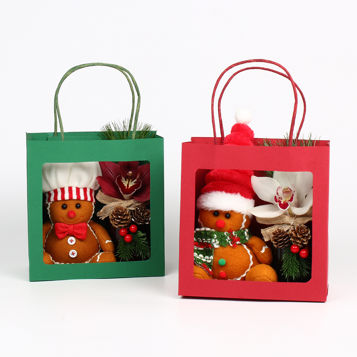 Cymbidium arr Kerst 1 bl met pluche gingerbread en decovaasje in tas