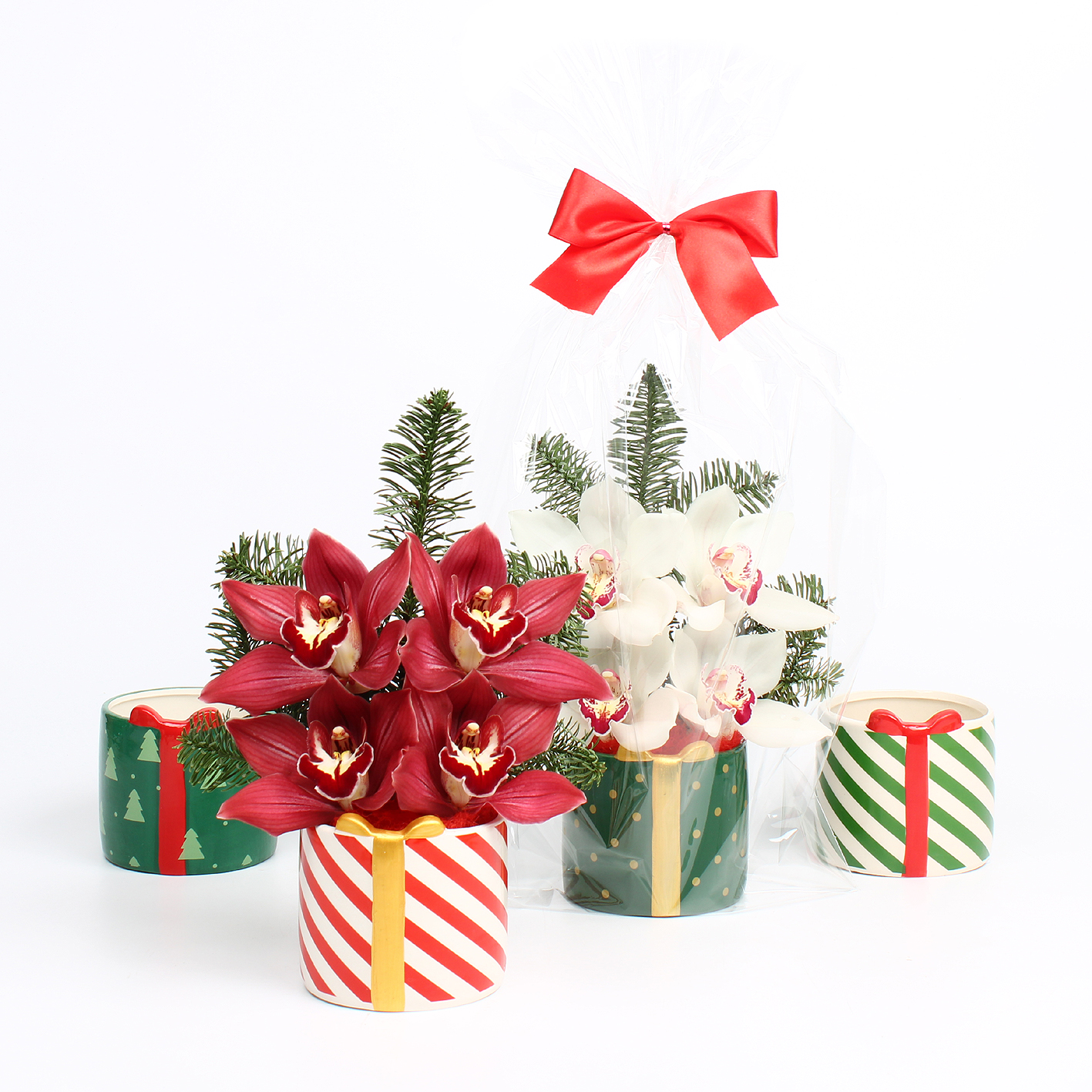 Cymbidium arr Kerst 4 bl in keramieken Christmas gifts pot