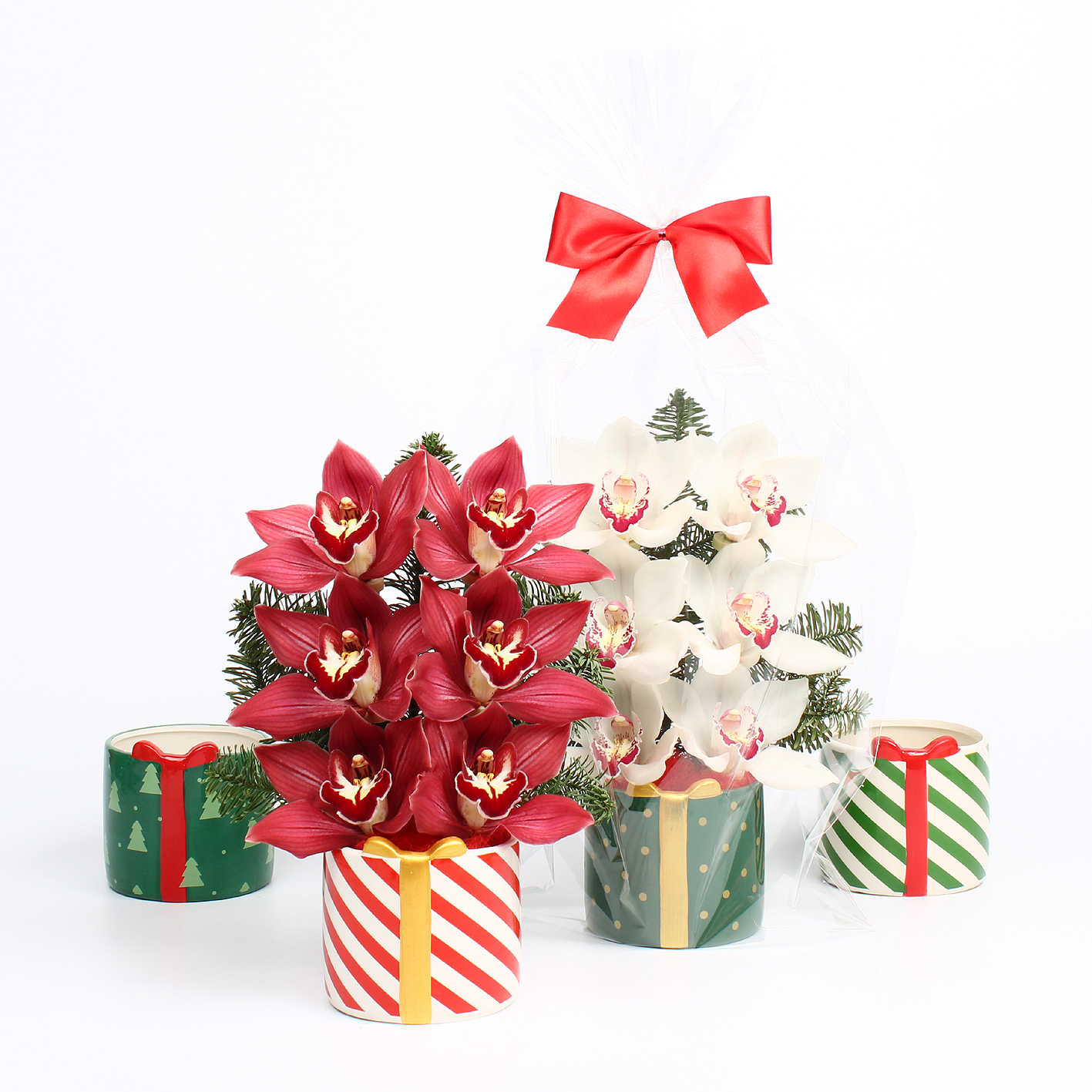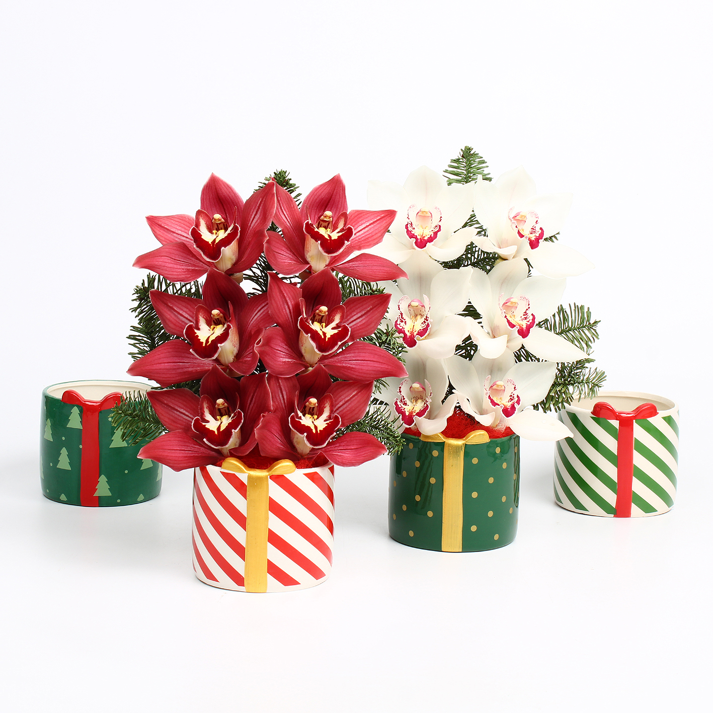 Cymbidium arr Kerst 6 bl in keramieken Christmas gifts pot