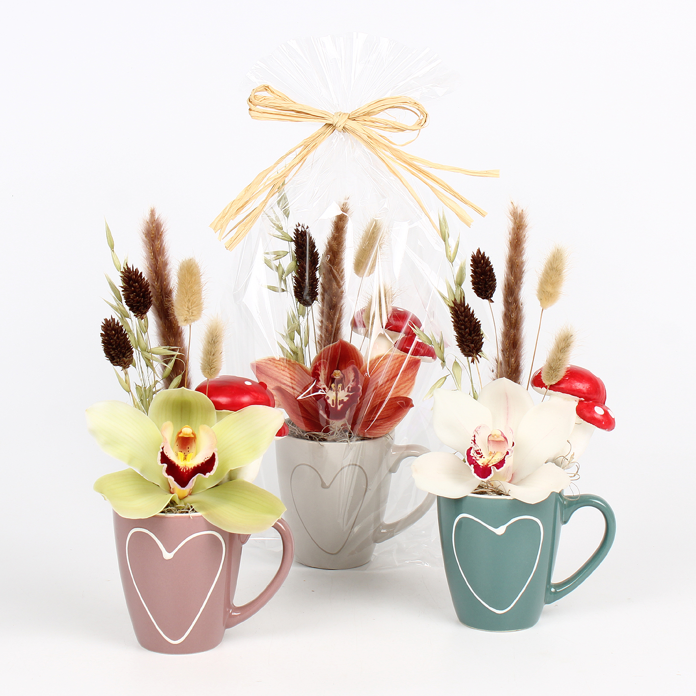 Cymbidium arr Najaar 1 bl in keramieken koffiemok