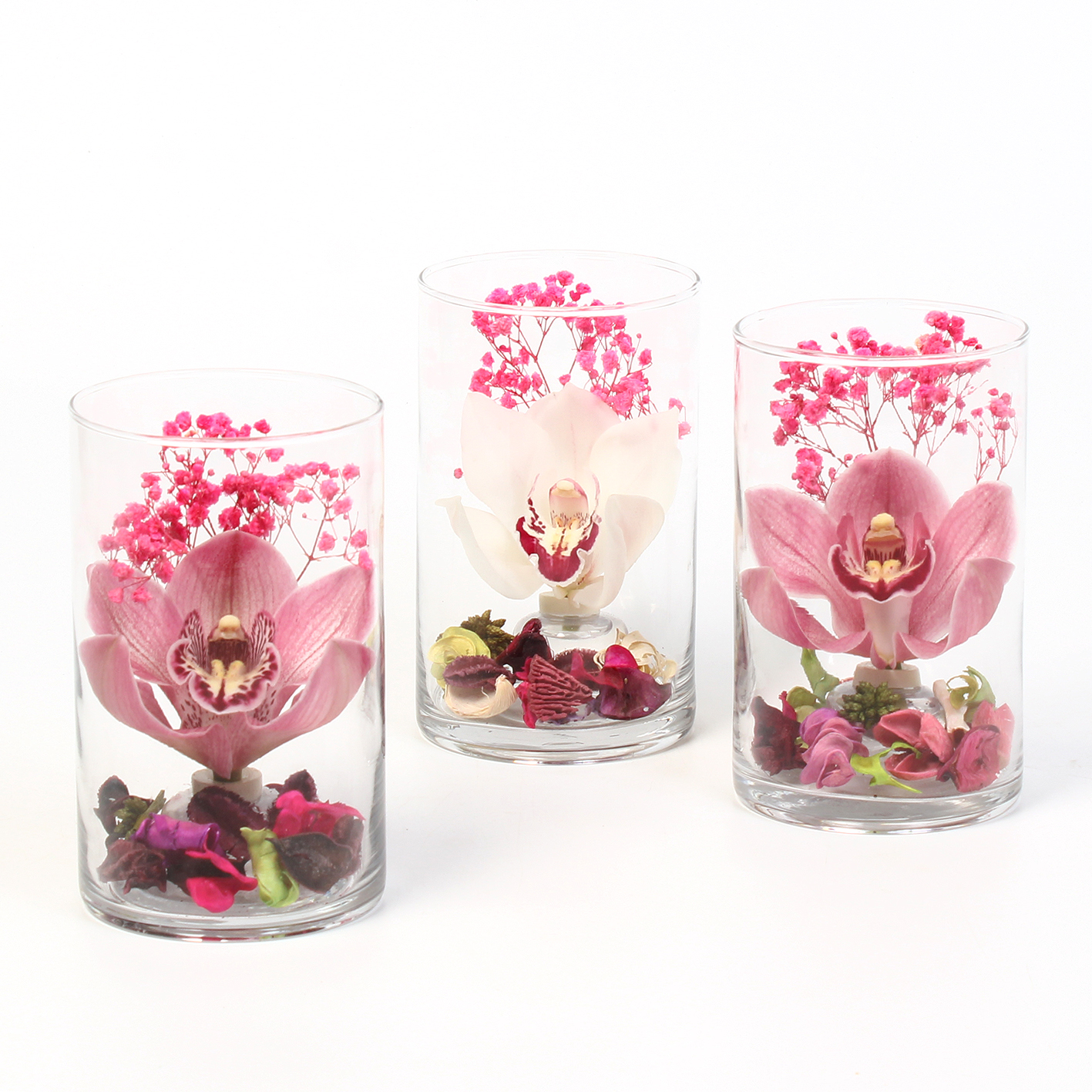 Cymbidium arr Pink October 1 bl in glazen cilindervaas Ø9xH15cm