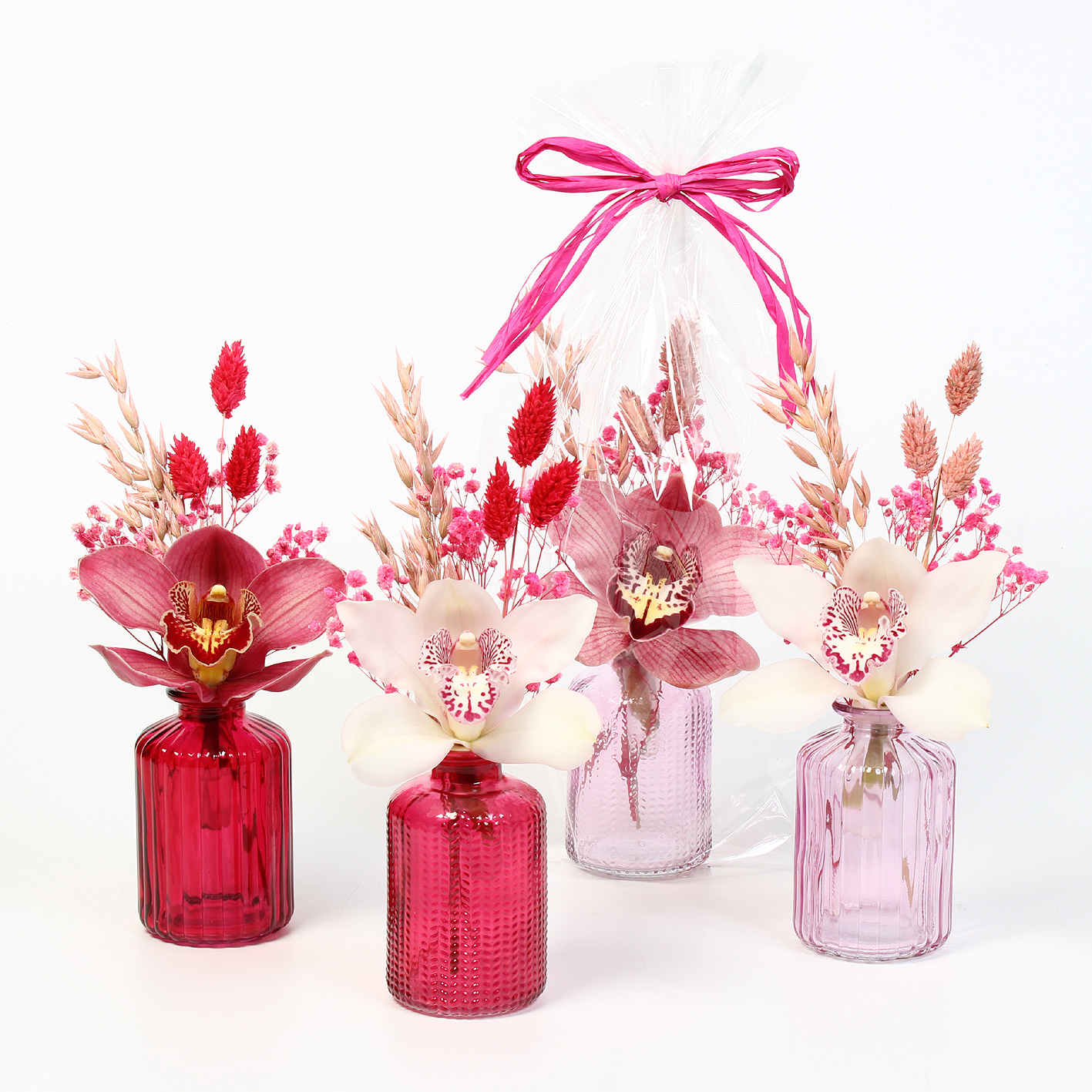 Cymbidium arr Pink October 1 bl in glazen flesje